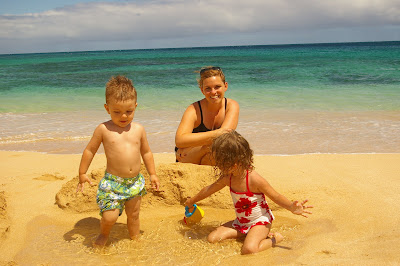 Wow. Let's just say wow. It is 10am, and my kids are still asleep because they still are on Hawaii time. I think I still have sand in my hair. I couldn't fall asleep last night because I couldn't hear the ocean. I didn't know what to have for breakfast because we don't have fresh papaya on the counter. I wanted to walk to the grocery store this morning...barefoot. My typing is really bad because i haven't touched a keyboard in two weeks. I am looking for rainbows out of my office window. We had to buy Ian new crocks before getting on the plane because they were too small...but we didn't realize it until then because he hadn't worn shoes all week. I can't smell plumerias outside my front door. There is no ocean breeze to keep the hair out of my face. My husband is leaving for work right now, and I had to remind him to put a shirt on. There was no rooster to wake me up this morning. And I may not make complete sense yet...Red-eye flights with toddlers and a four hour time difference takes a while to adjust. But then, so does coming home from a tropical paradise.